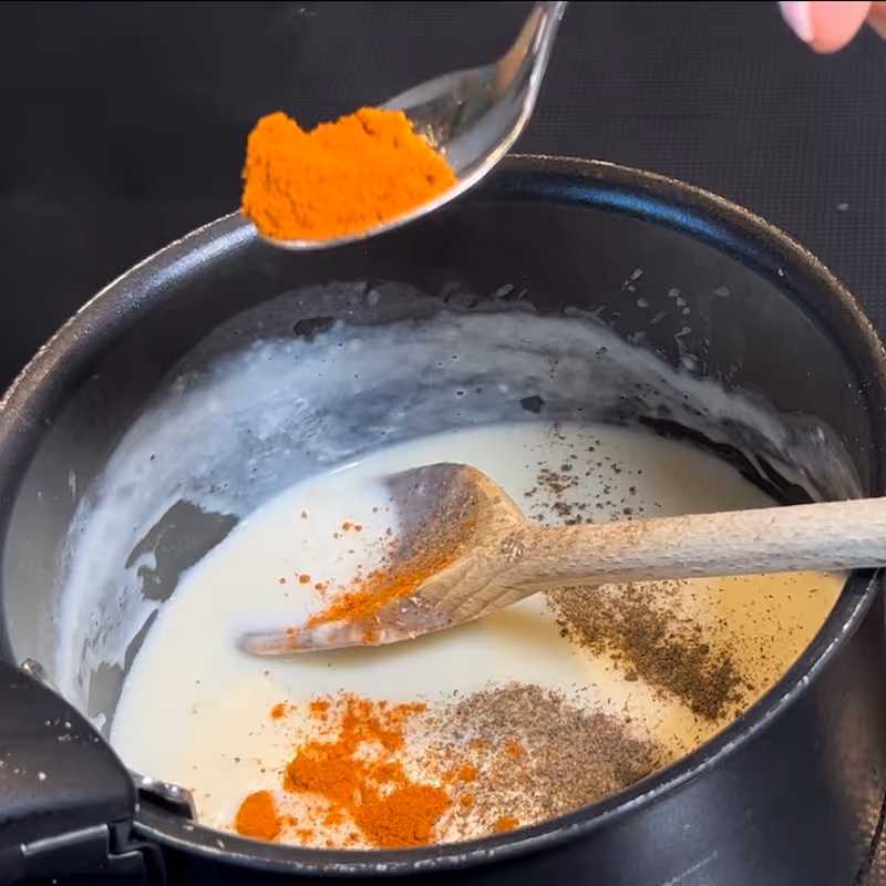 - Cook until the sauce thickens, then add smoked paprika, nutmeg, salt, and pepper to taste.